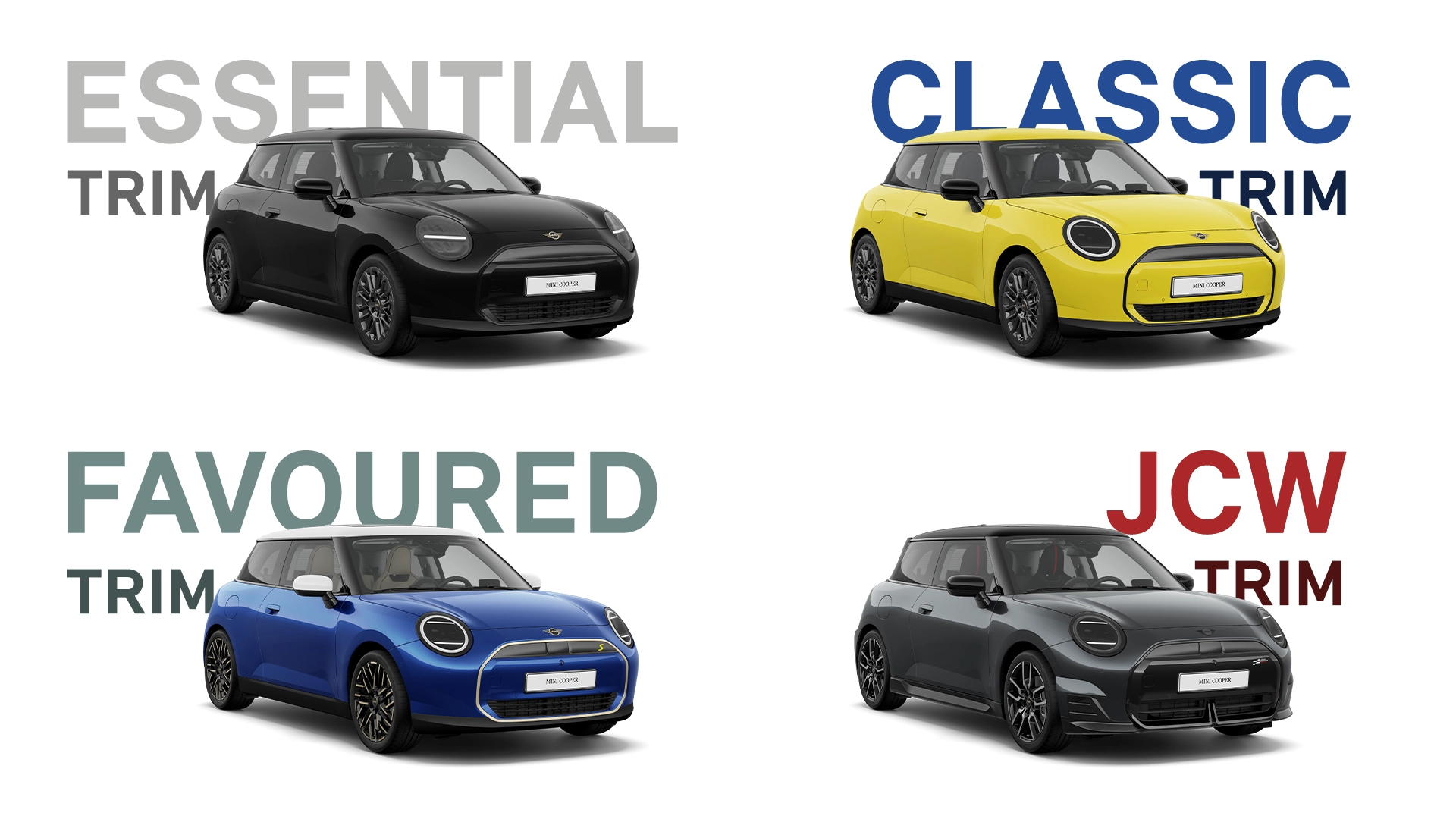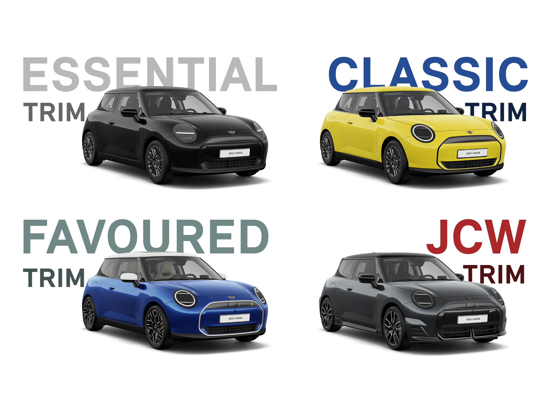 Non seulement nous vous offrons une gamme d’équipement de série plus vaste que jamais, mais aussi nous avons revu nos motorisations et optimisé nos quatre finitions. Cliquez ci-dessous pour trouver la MINI de votre choix et découvrir ce qu’elle inclut.